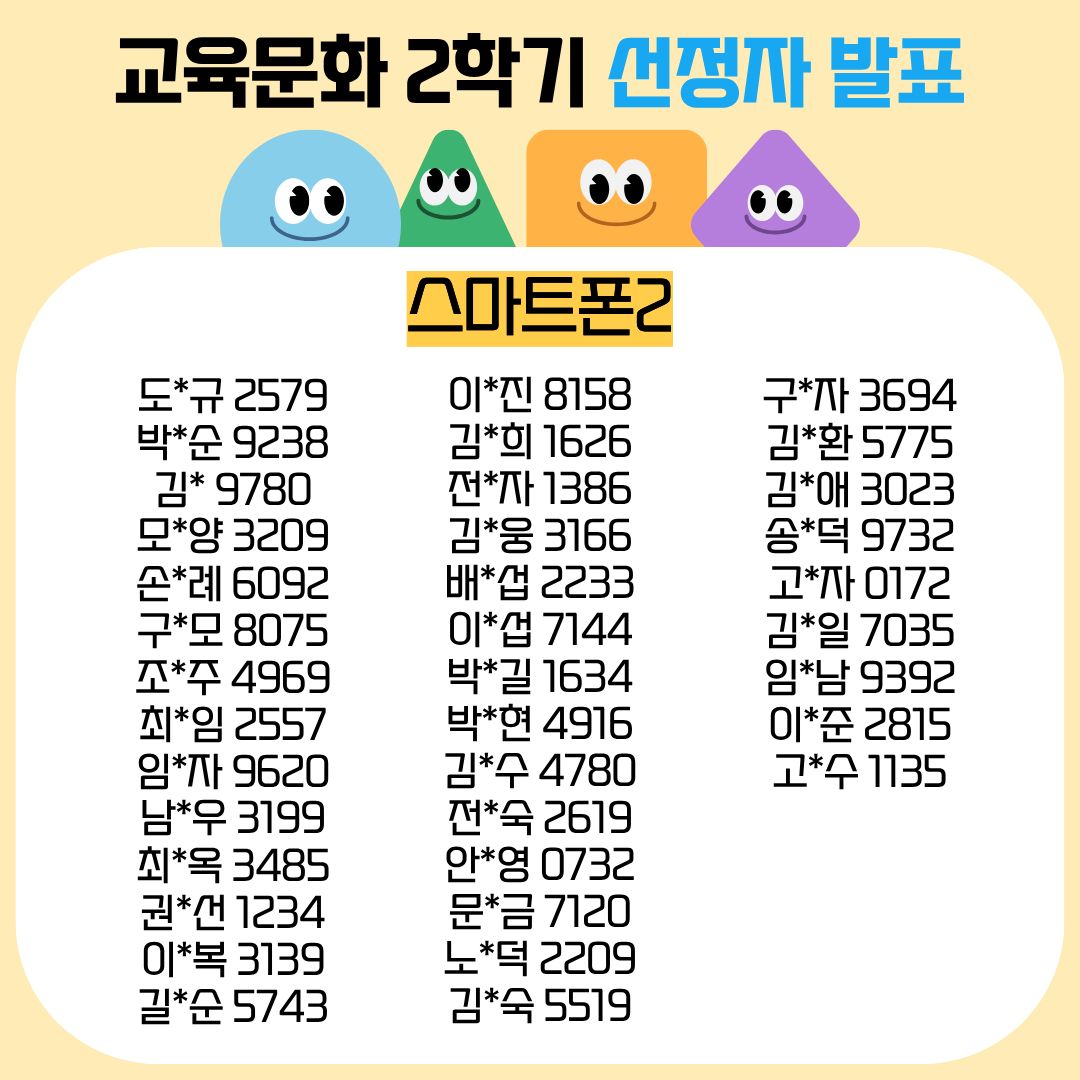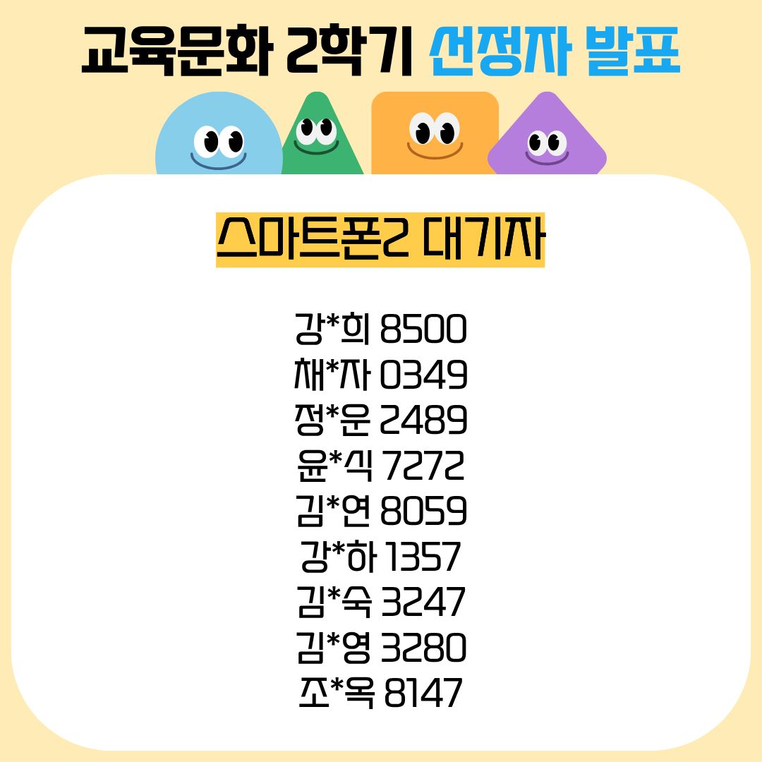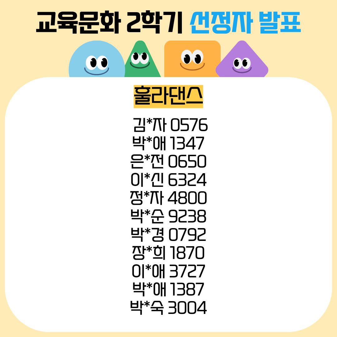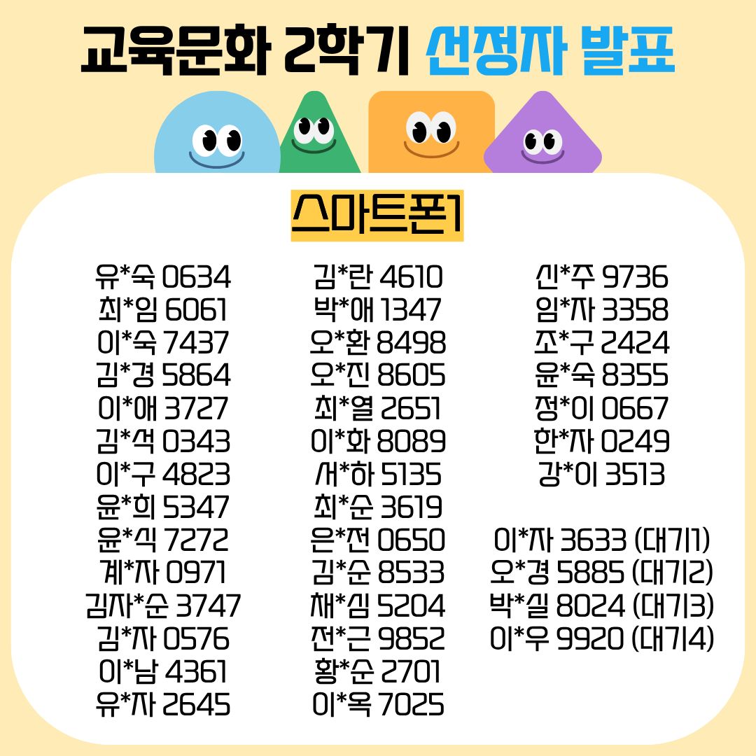 성함 + 핸드폰번호 뒷자리로 선정 여부 확인해주시면 됩니다~!