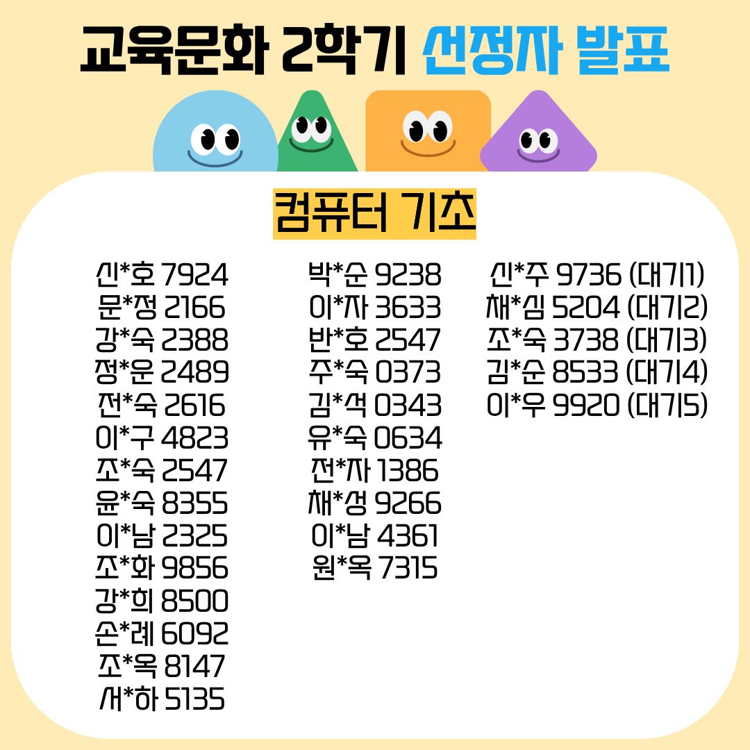 선정되신 분들은 개별적으로 수업 시작 전 안내사항 보내드릴 수 있도록 하겠습니다!