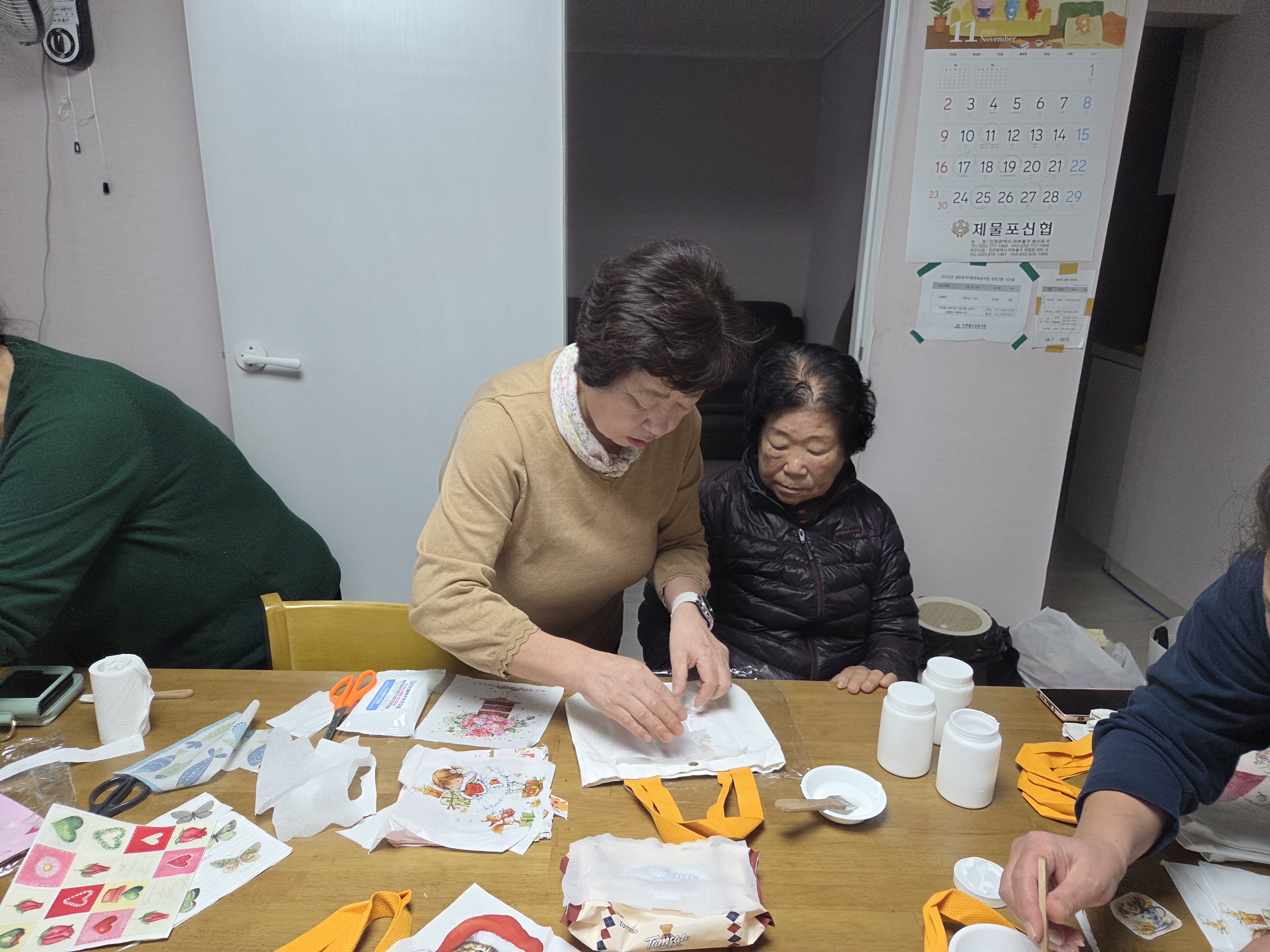 11월 12일 주부9단이 주안역전경로당에 방문하여 냅킨아트 주민체험교실을 진행했습니다!