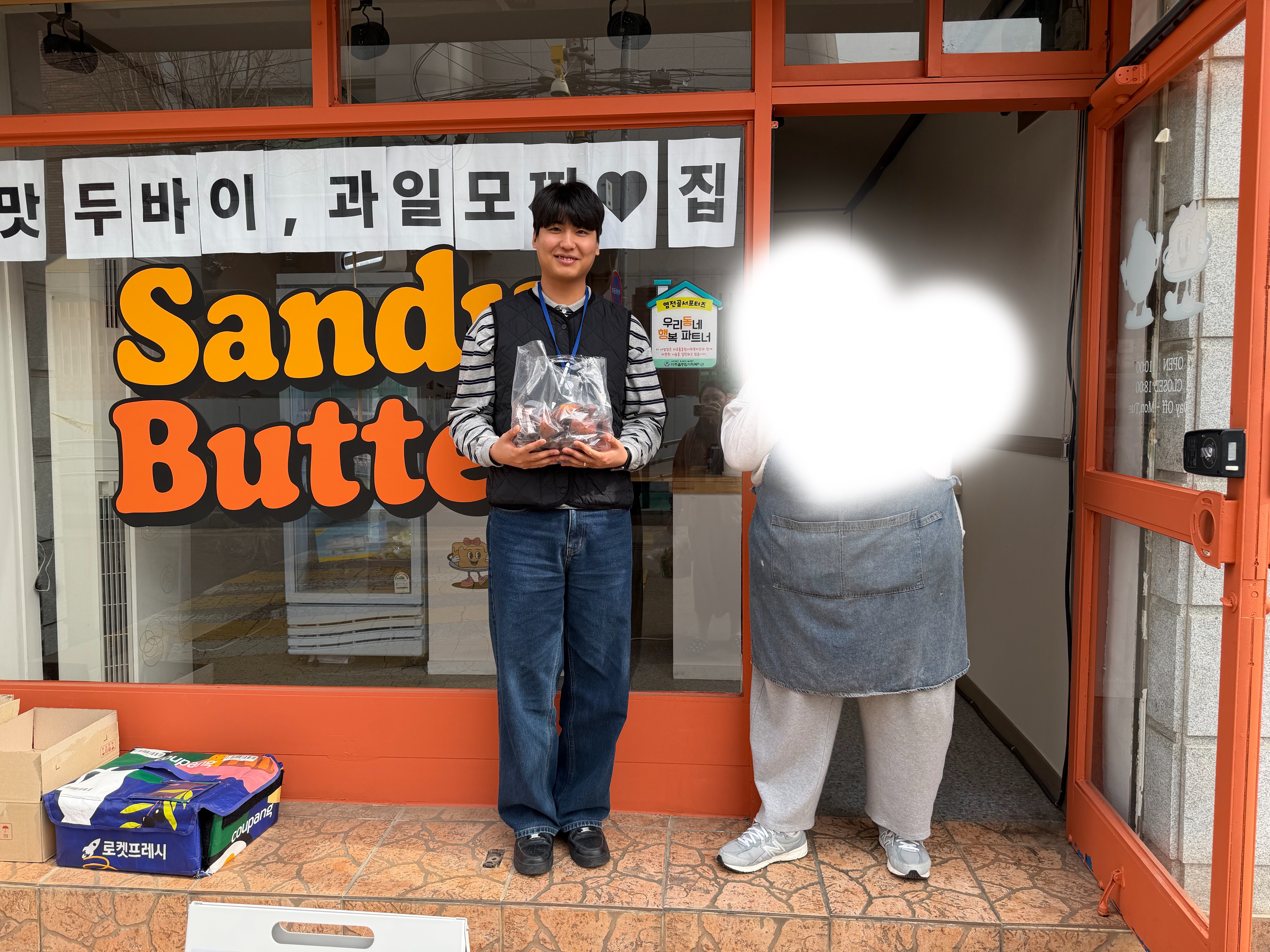 부평 굴포천역 인근에 위치한 '샌디버터'에서 매월 1회 지역 내 저소득층 아동,청소년 가정을 위한 간식으로 디저트(휘낭시에, 에그타르트 등)를 후원해주시기로 하여 방문 후 전달식을 진행하였습니다.