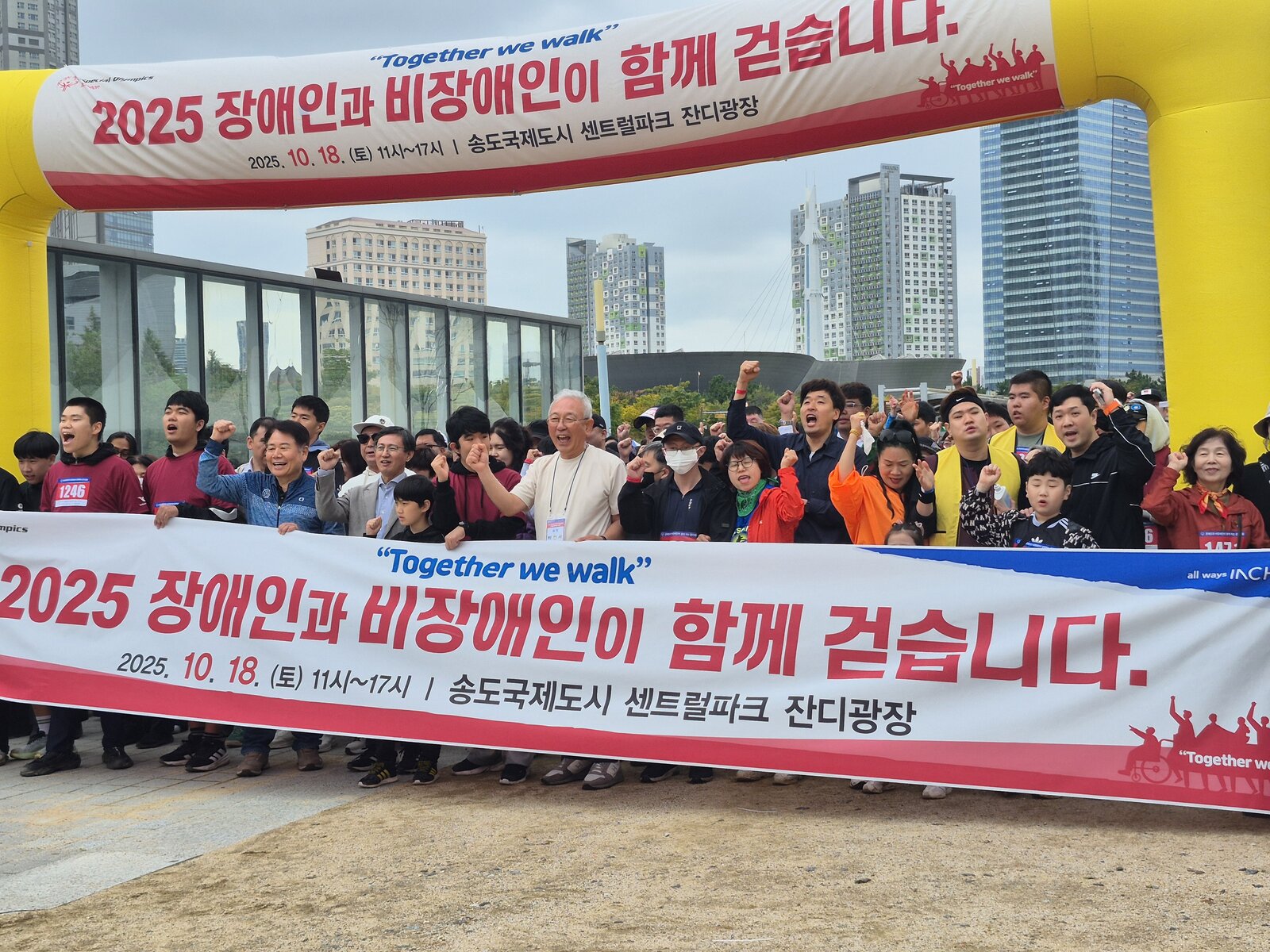 송도 센트럴파크 호수공원 둘레길(3.6km)를 장애인과 비장애인 4,000여명과 함께 걷는 캠페인을 진행하였습니다.