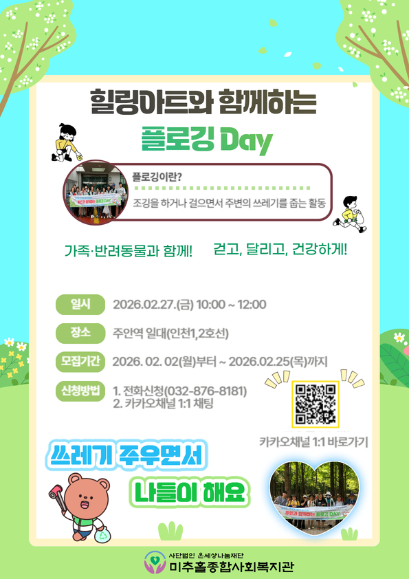 미추홀종합사회복지관에서 2026년 첫 플로깅 Day 참여주민을 모집합니다!