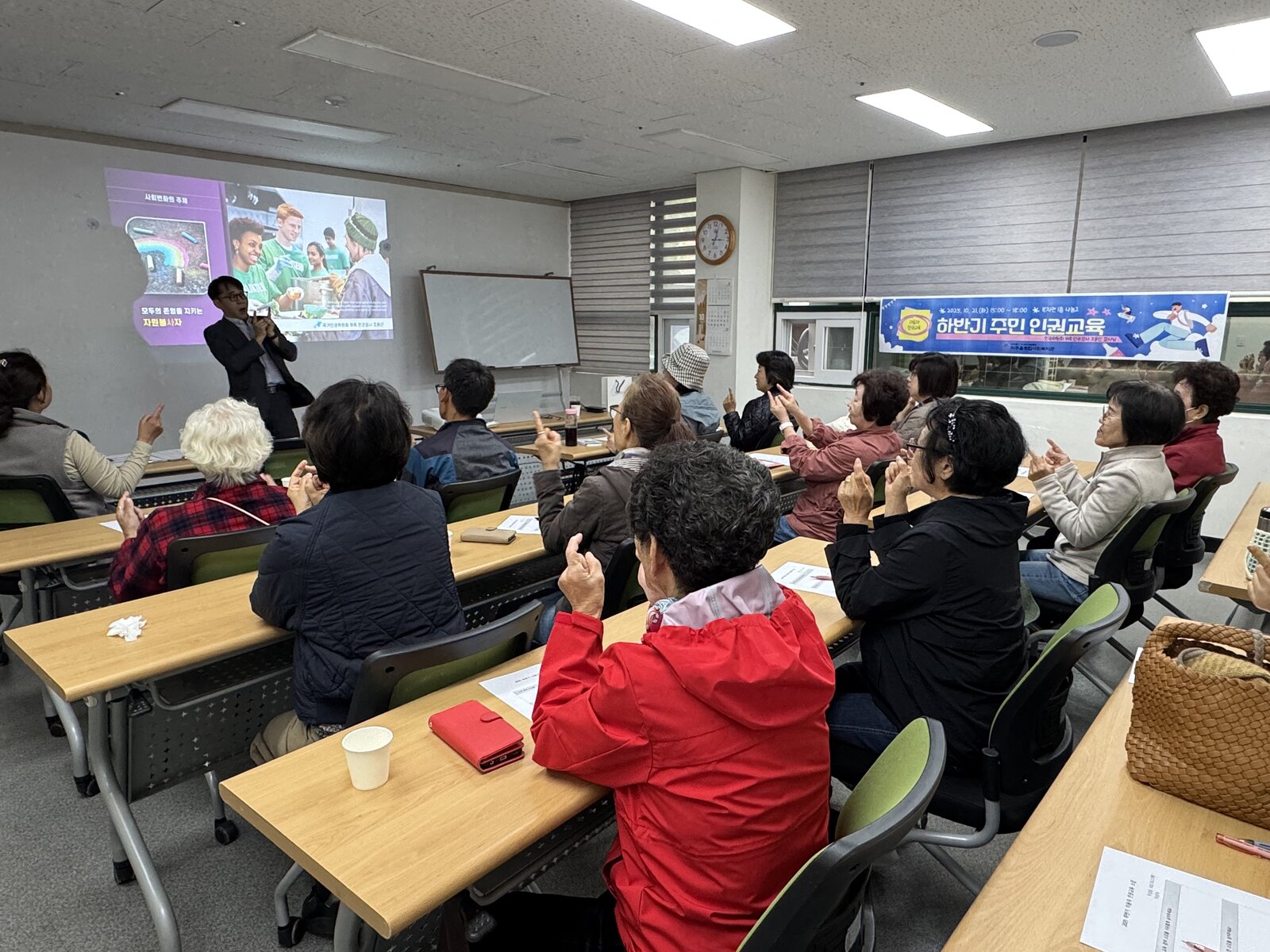 10월 21일, 복지관에서는 이용자분들을 대상으로 한 하반기 인권교육을 진행하였습니다. 인권교육은 기관에서 주민분들 누구나 들을 수 있도록 연 2회 상/반기로 진행하고 있습니다.