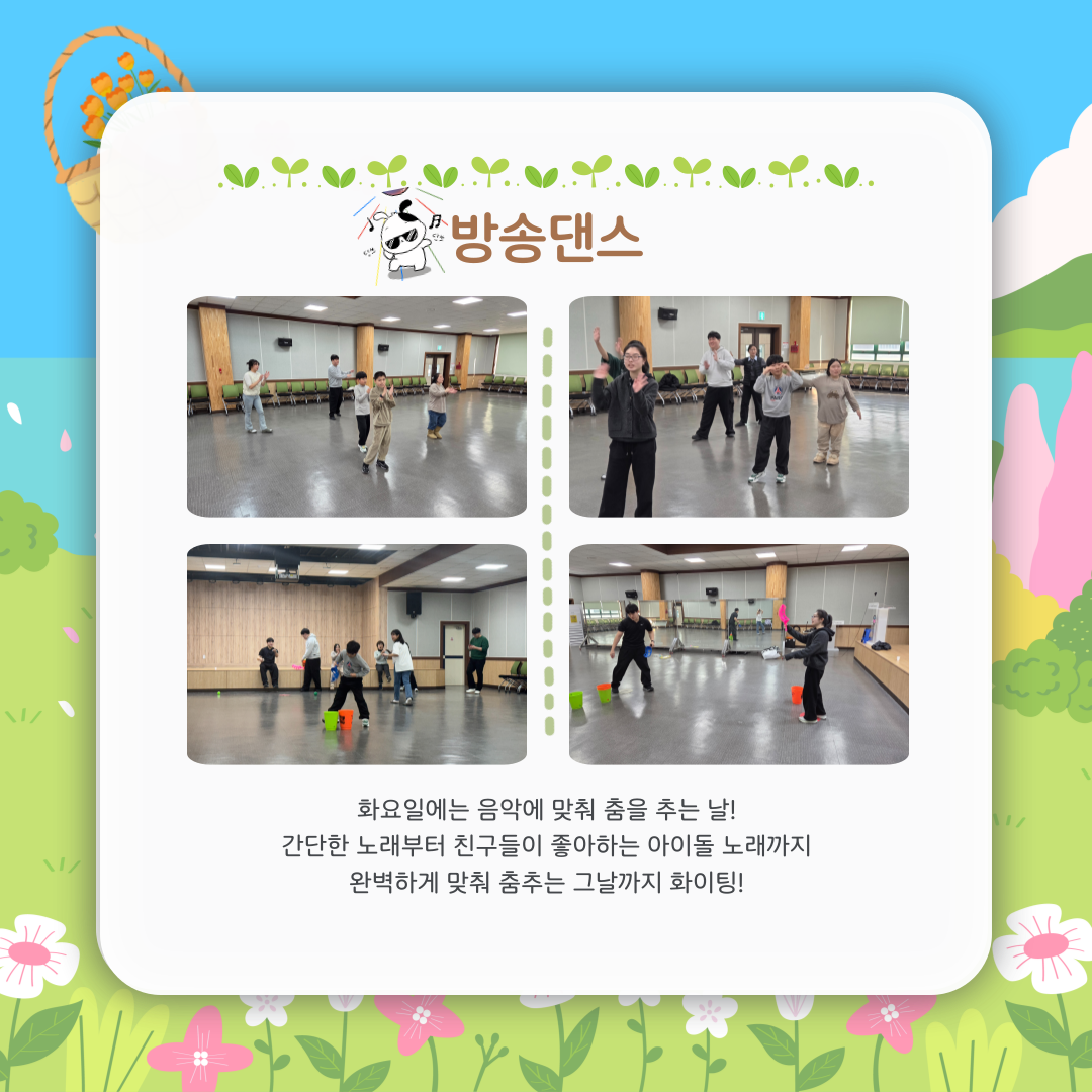 화요일에는 음악에 맞춰 방송댄스를 추며 이용자들이 좋아하는 춤들을 신나게 추기도 합니다!