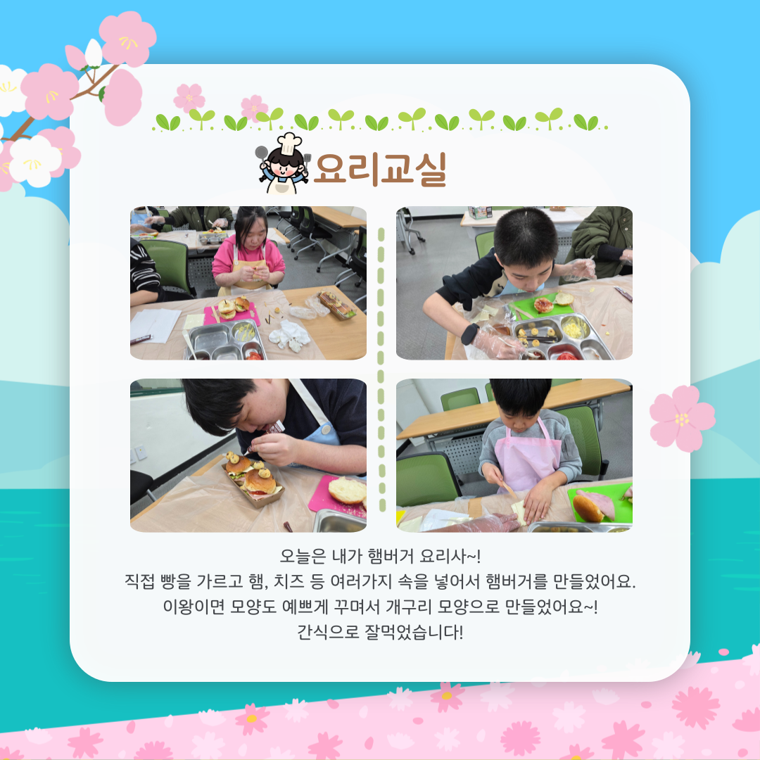 요리교실을 통해 생활에서 필요한 가사능력을 기르기도 하였구요.