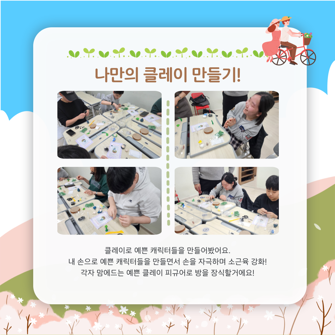 클레이 만들기를 통해 자신만의 미적감각을 표현할 수 있는 좋은 기회가 되기도 했답니다.