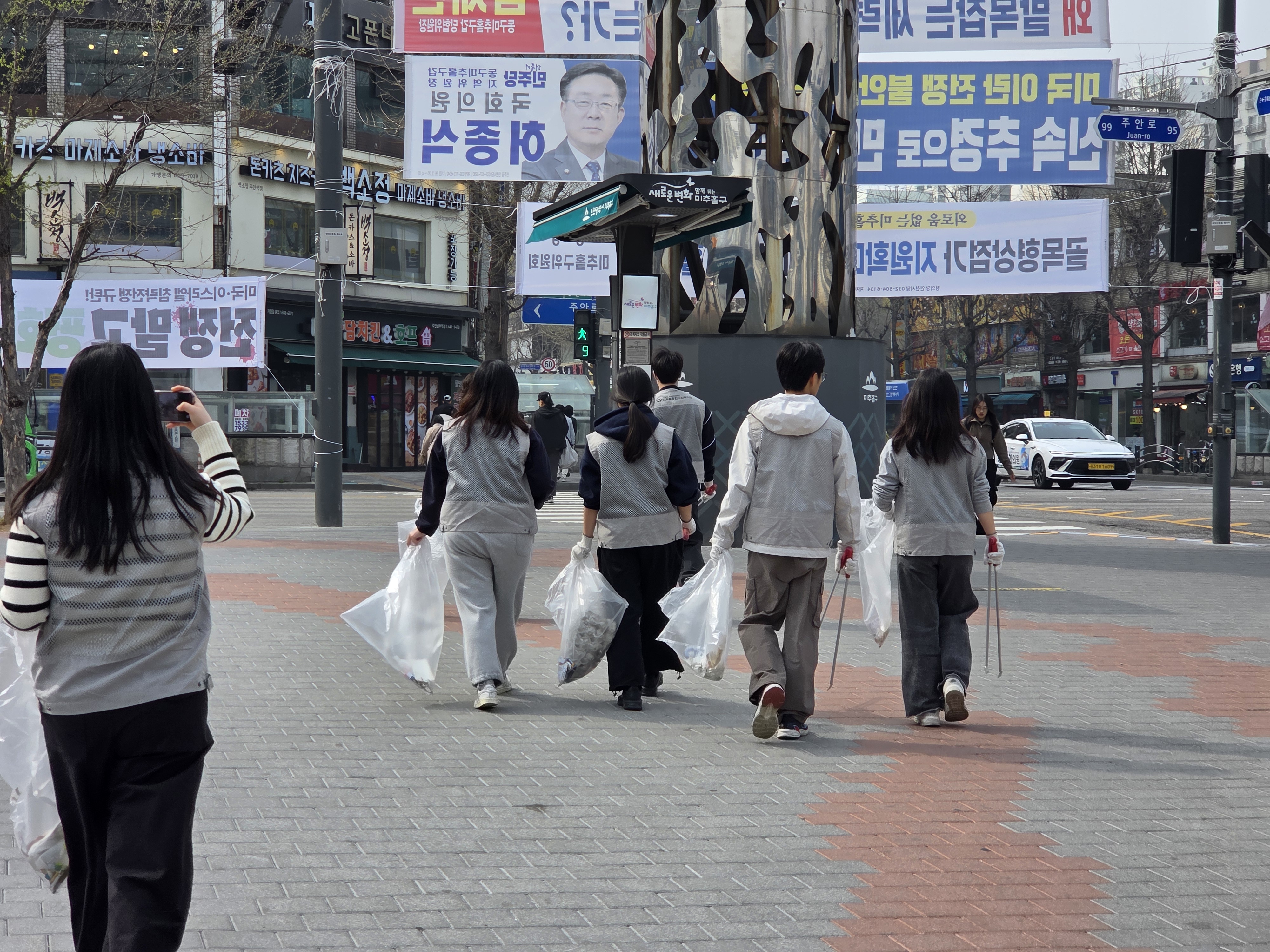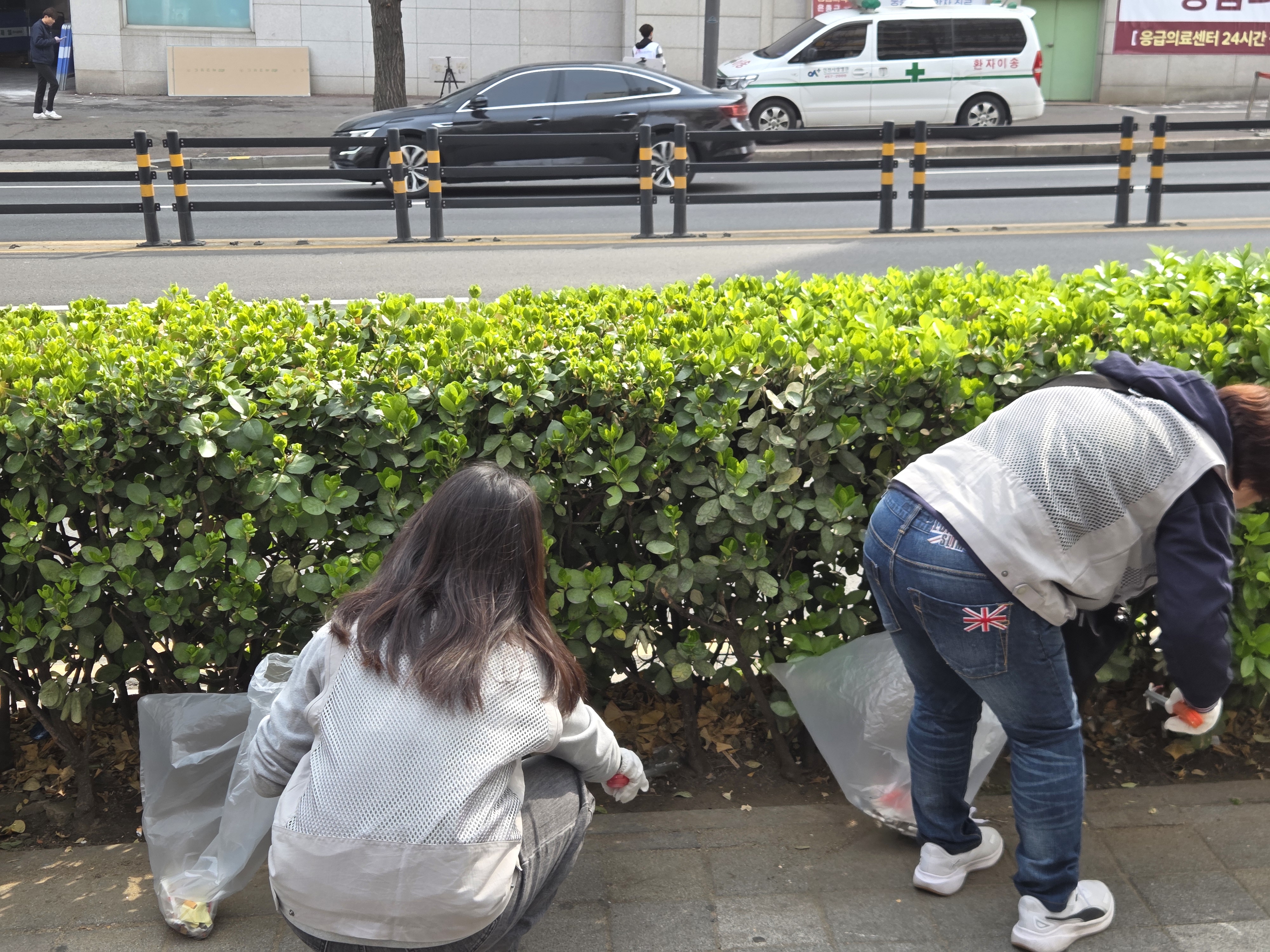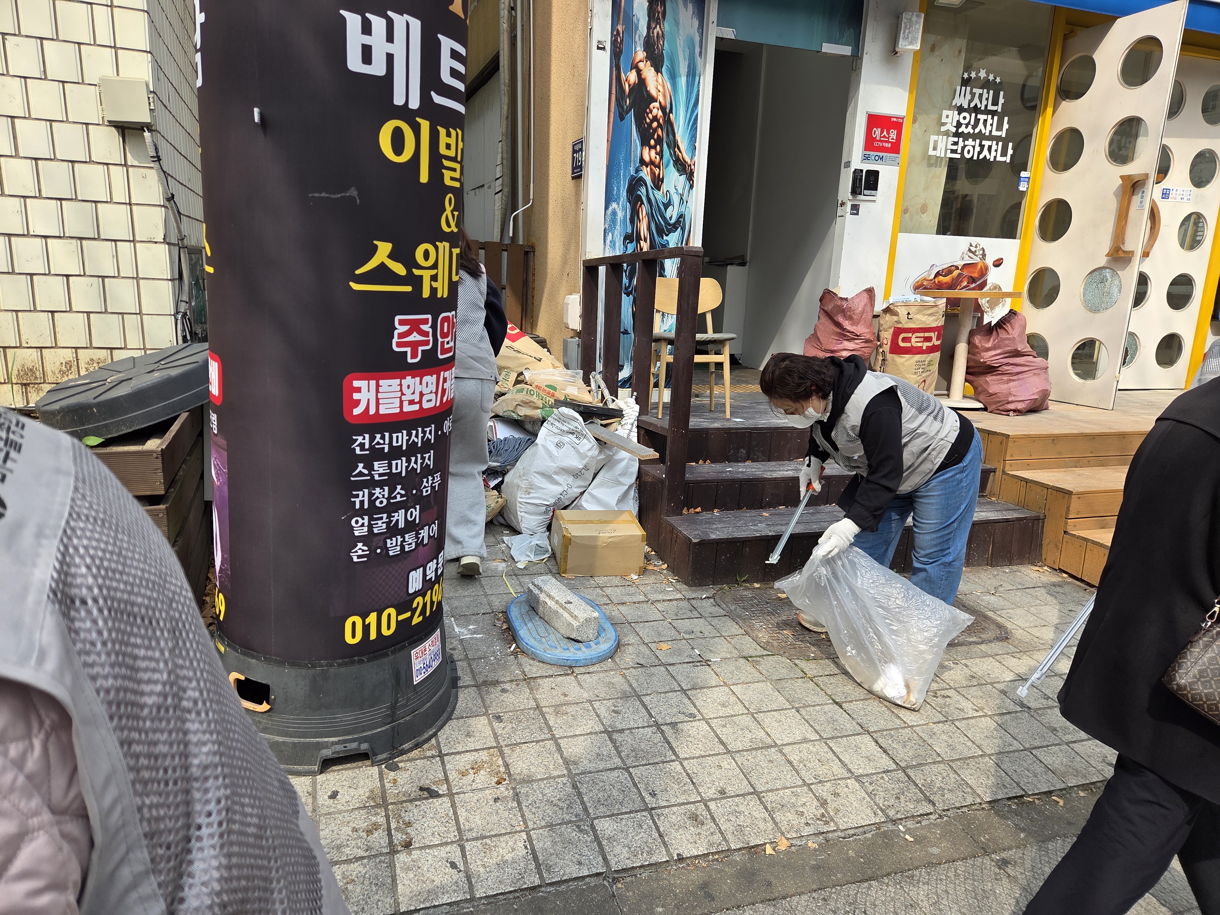 이동하면서 골목길, 버스정류장, 공원 주변 등에 버려진 담배꽁초, 음료컵, 비닐류 등의 쓰레기를 수거했습니다~