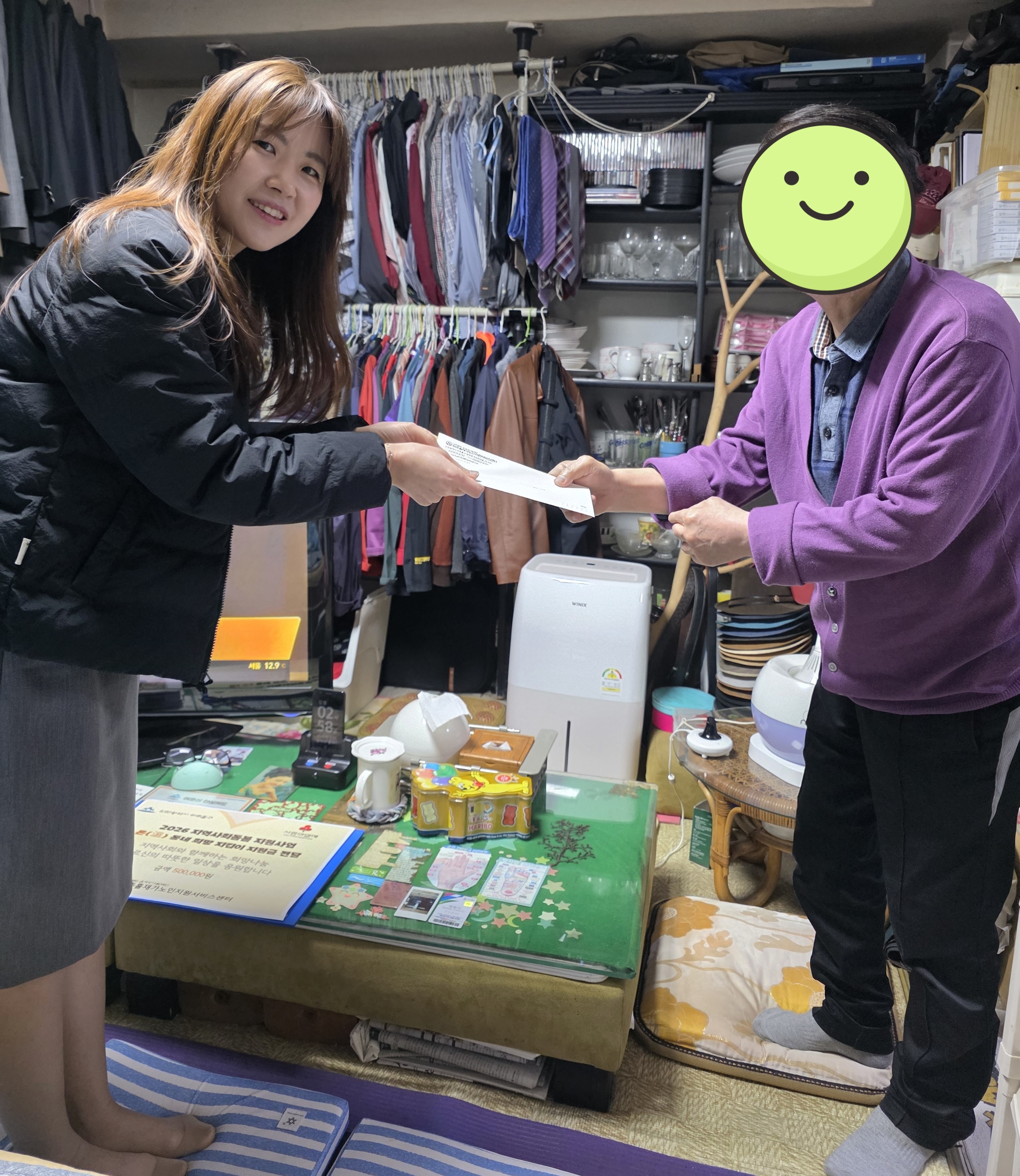4월 7일 어르신 가정에 방문하여 50만원을 지급해드렸는데 어르신은 "이렇게 챙겨주셔서 감사하다. 급하게 쓸 돈이 있었는데 덕분에 쓸 수 있게 되었습니다"라고 말씀하시면서 깊은 감사를 표하셨습니다.