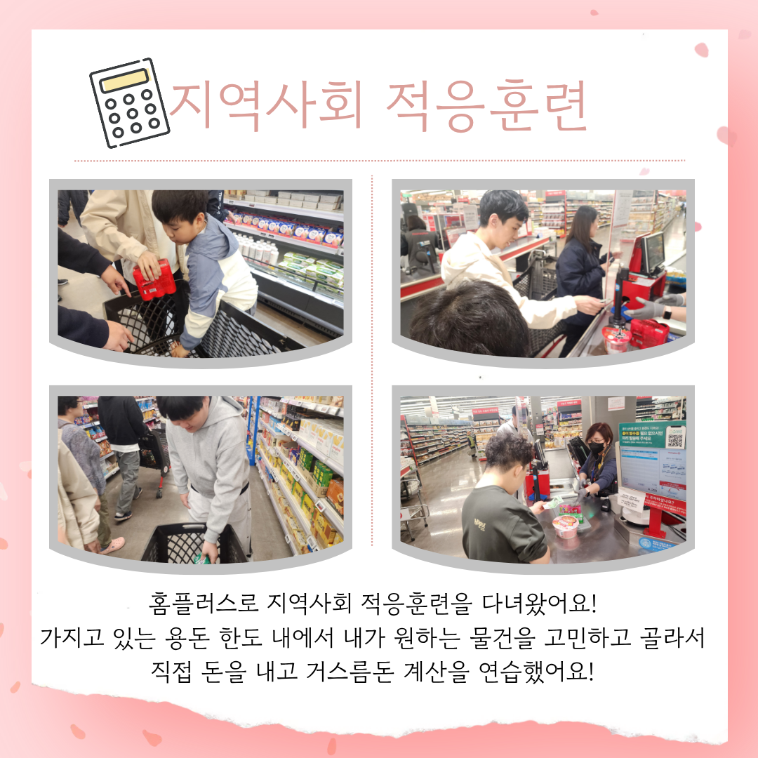 이번 지역사회 적응훈련으로 홈플러스에 가서 내가 가지고 온 용돈으로 먹고 싶은 간식을 사며 현금계산을 해보았습니다.