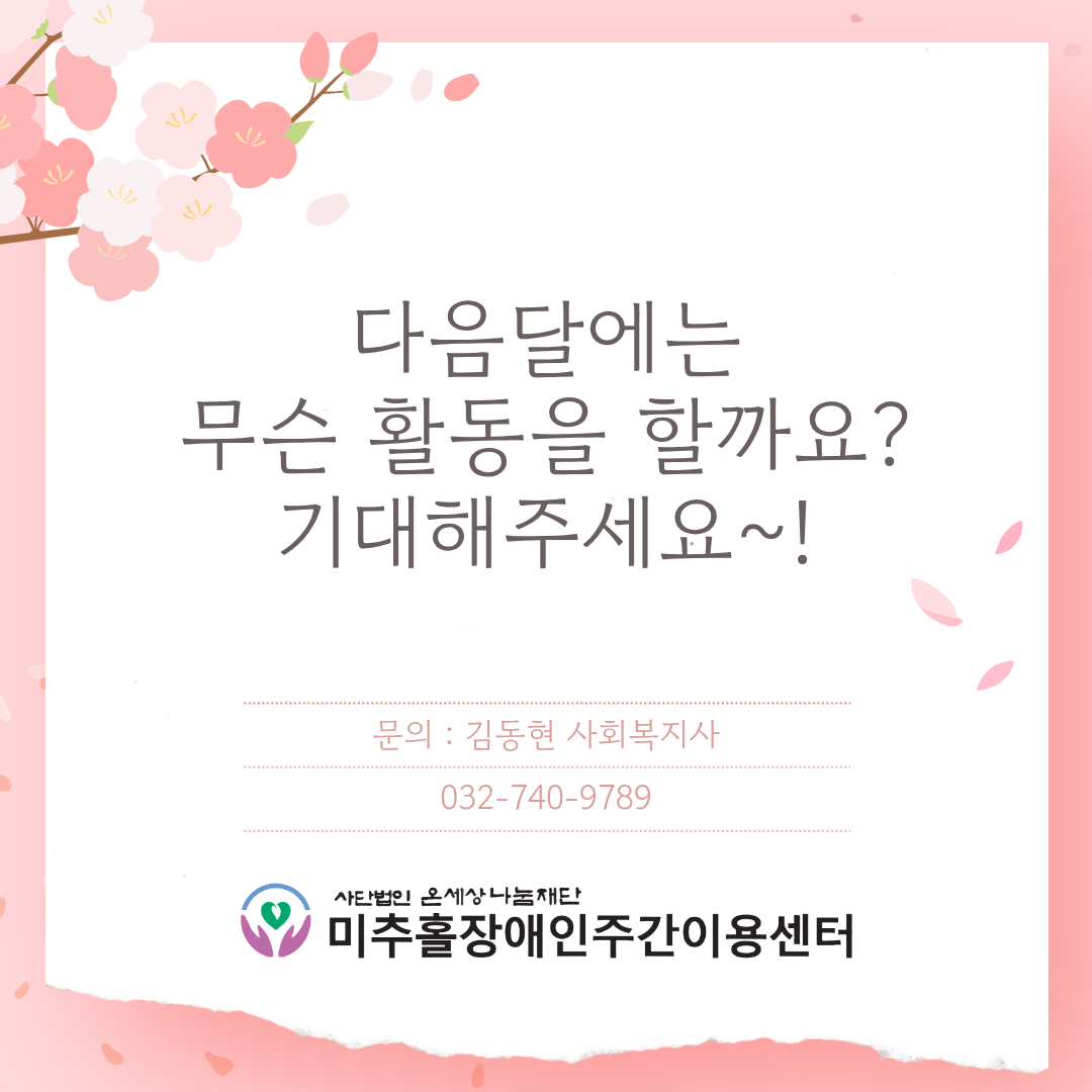 4월동안 미추홀장애인주간이용센터에서는 다양한 활동을 했습니다!