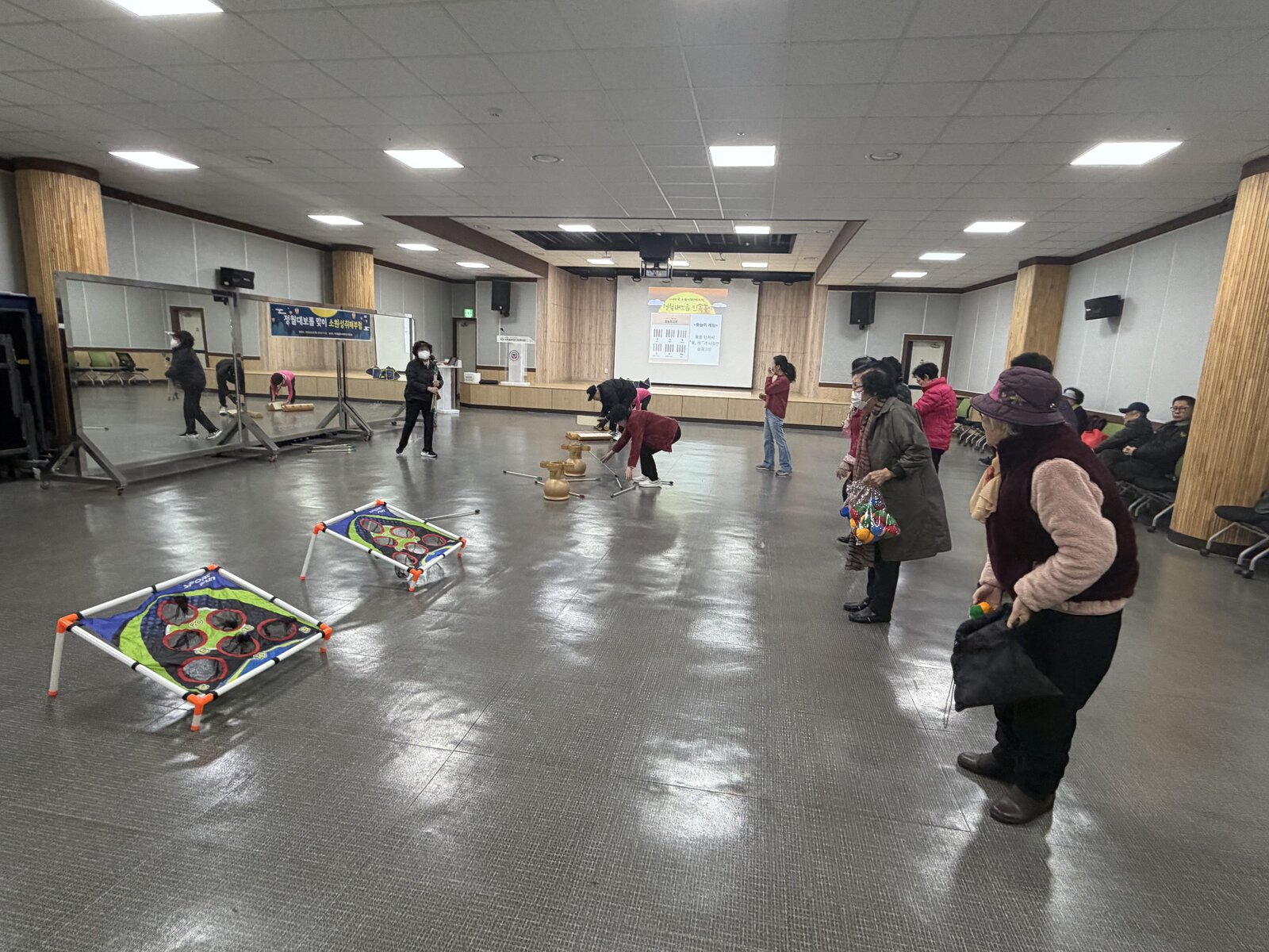 어르신들과 함께 정월대보름의 유래와 전통놀이에 대해 알아본 뒤, 민속놀이(투호 체험, 윷놀이, 공 던지기) 활동을 진행하였으며, 한 해 소망을 담은 소원지를 작성하는 뜻깊은 시간도 가졌습니다.