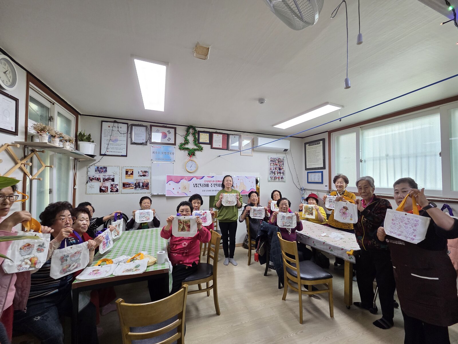 경로당에 계신 어르신들에게 주부9단이 하는 활동을 알리고 냅킨아트 체험을 진행하였는데요!
