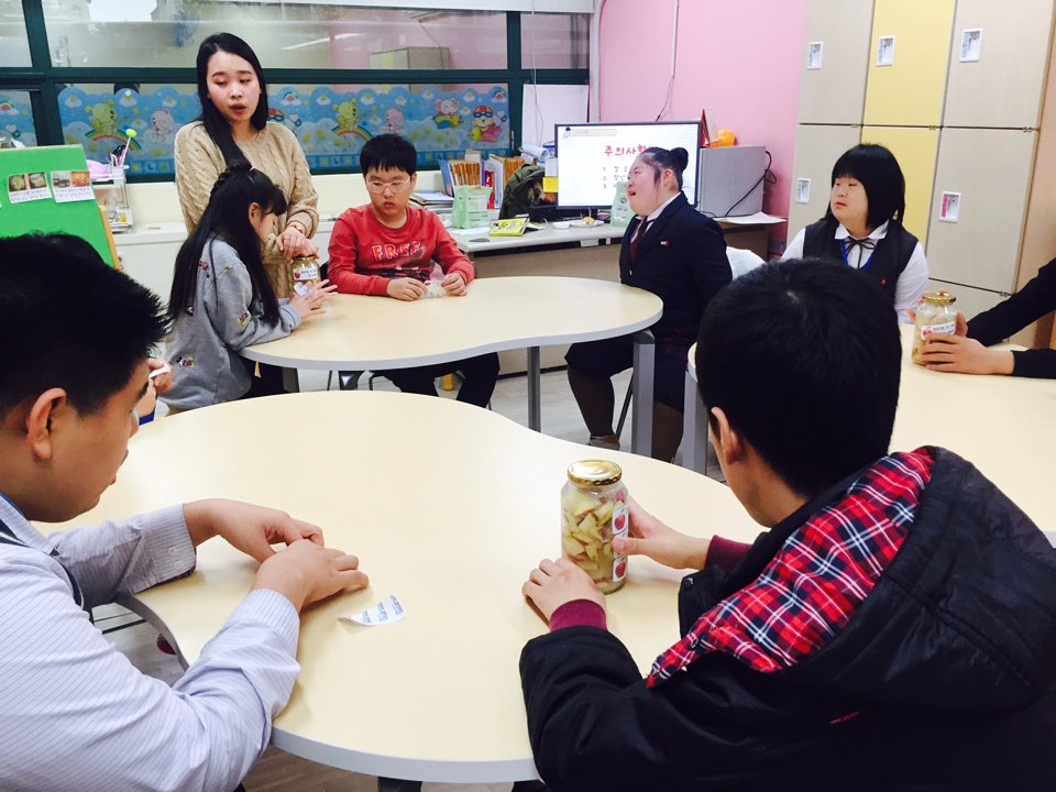 아동이 직접 사과를 자르고, 설탕에 버무린 사과를 유리병에 담는 등 활동 후,