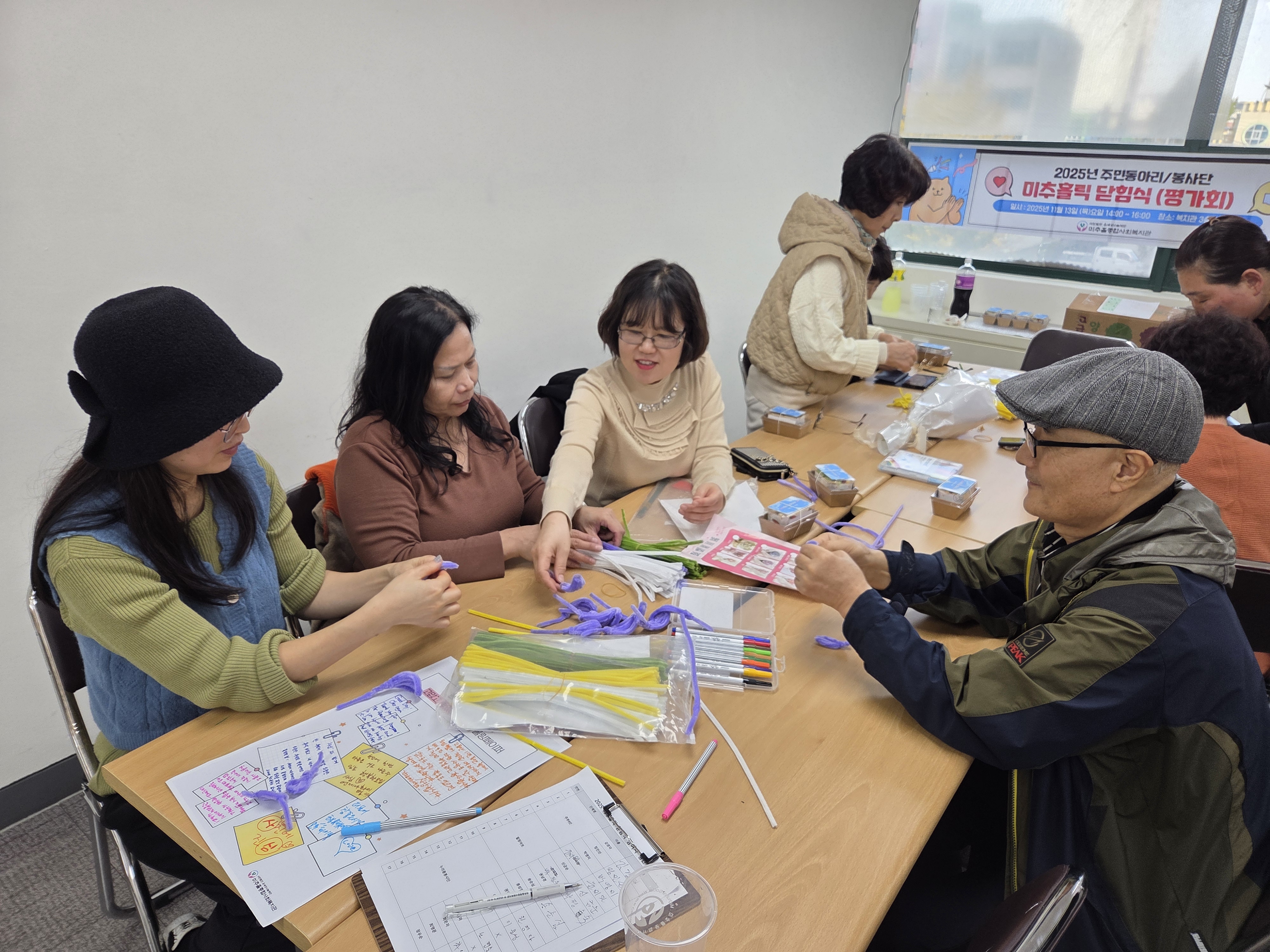 이후에는 모임별 주민들이 모여 함께하는 연합 체험활동으로 모루인형 꽃다발만들기를 진행했답니다~! :)